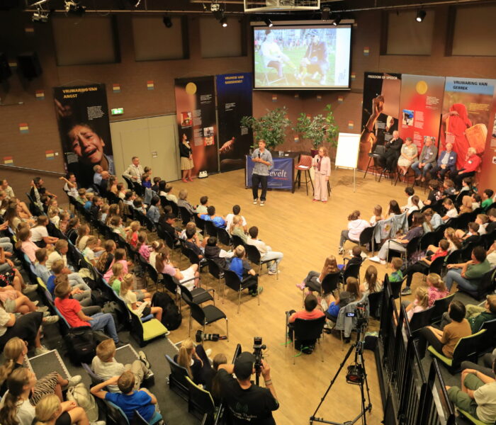 Evgeniy Levchenko groeide op in de voormalige Sovjet-Unie en vluchtte naar vrijheid. Vandaag is hij Nederlander én Oekraïner. In zijn vrijheidscollege vertelde hij hoe de oorlog zijn familie raakt, waarom vrijheid geen gegeven is, en hoe je er samen voor zorgt.